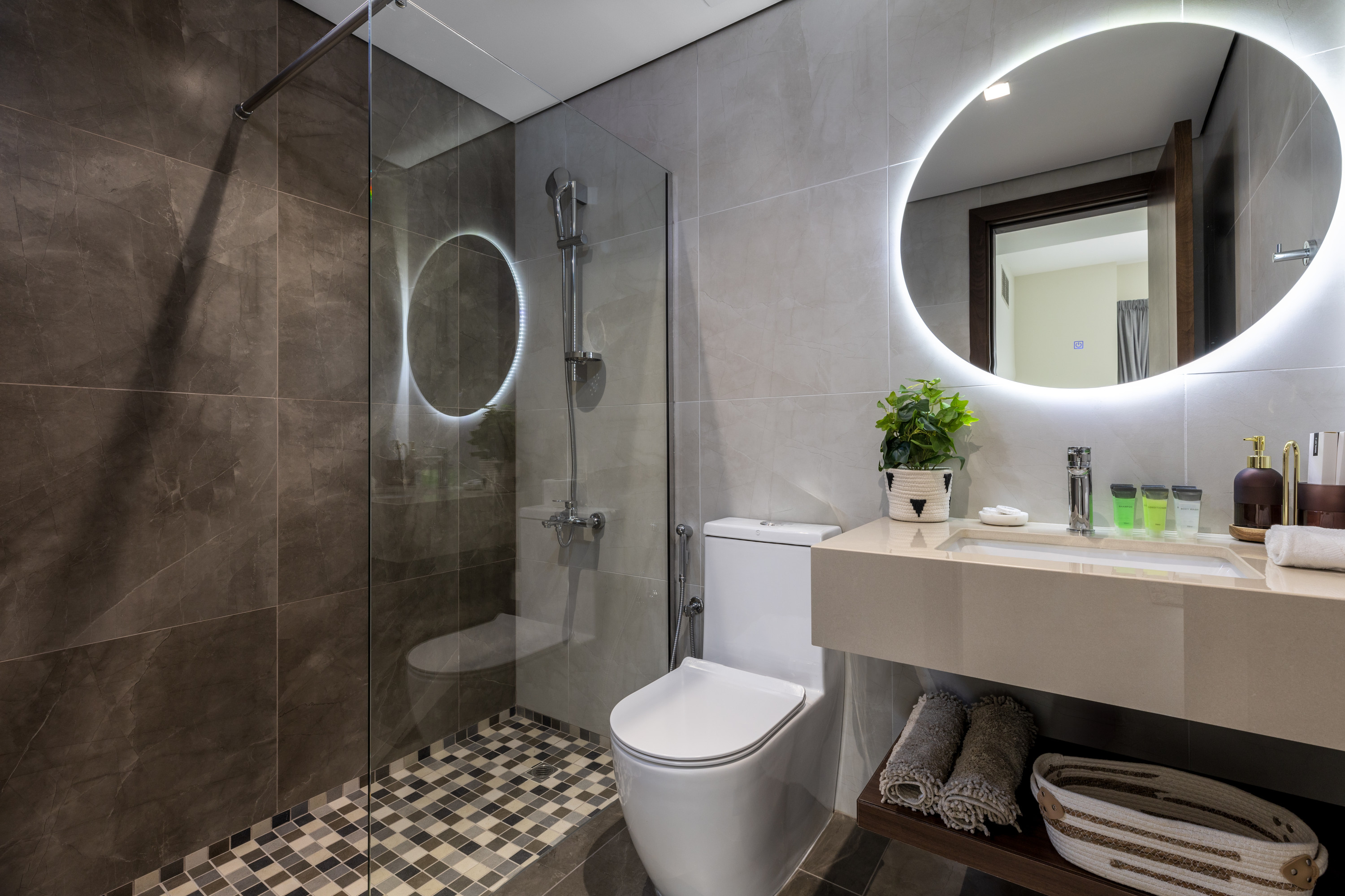 - الأساسيات (المناشف، الوسائد، بياضات السرير، صابون، ورق المرحاض)